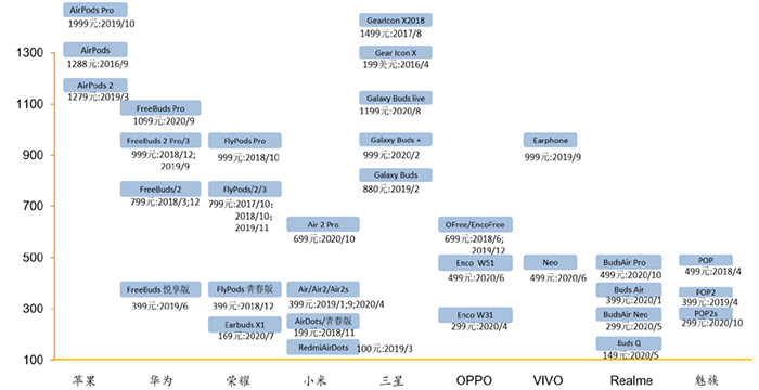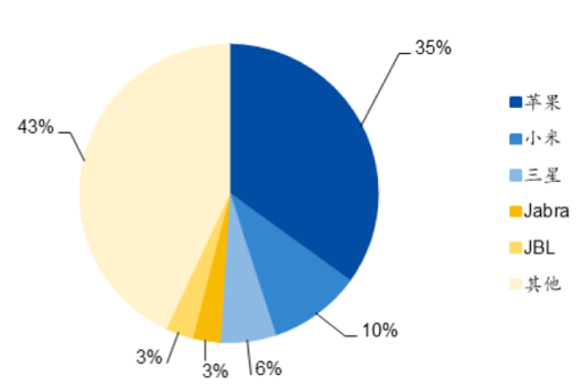 От гледна точка на разпространението на марката, пазарът на TWS слушалки беше взривен за първи път от Apple. След няколко години на разработка, неговият продукт AirPods има много висок пазарен дял на пазара от среден до висок клас. Според данните от анализа на Counterpoint, към второто тримесечие на 2020 г. първите три компании на пазара на TWS са Apple (35 процента), Xiaomi (10 процента) и Samsung (6 процента). пазар.