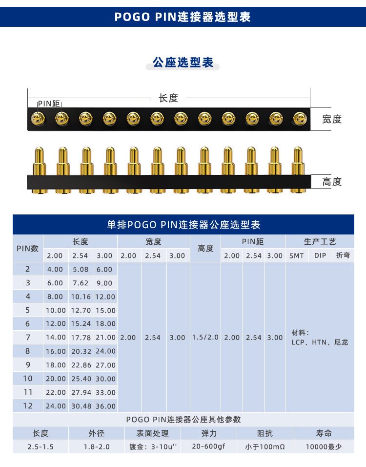 Ние професионално проектираме, произвеждаме и продаваме пого щифтове за зареждане на мобилни телефони, щифтове за батерии, щифтове за антена и други пого щифтове и конектори. Мъжкият и женският щифт за зареждане с висок ток имат характеристиките на малък размер, голям ток, силни контакти и стабилна производителност.
